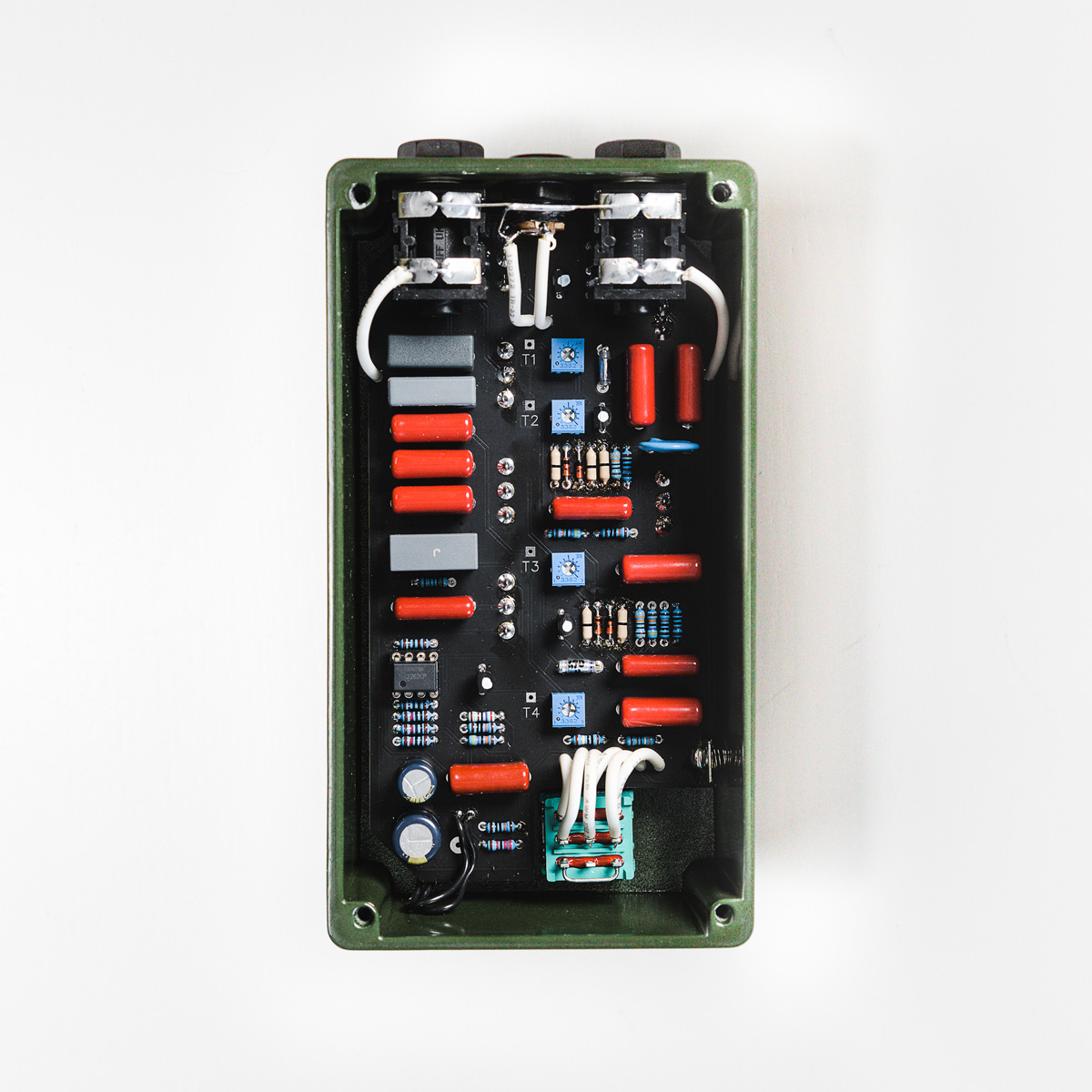 The BFGRMWB is not just a simple clone of a vintage pedal. OKKO has meticulously analyzed and replicated the sound of a particular early V7D Bubble Font Big Muff, known for its bold and complex tone.